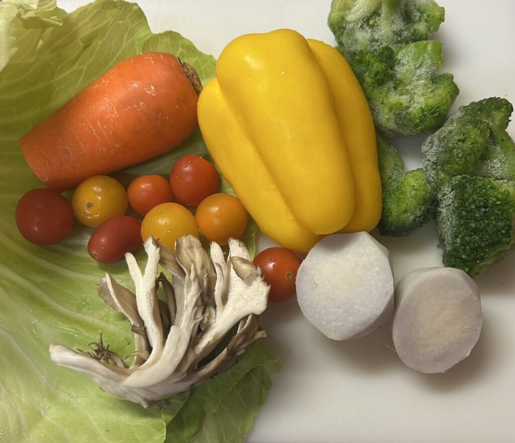 舞茸やブロッコリー、パプリカなど、抗酸化作用のある食材をたっぷり使い、