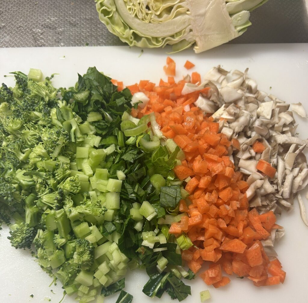 【写真でわかる】栄養たっぷり!豚肉と鶏レバーの野菜たっぷりごはん